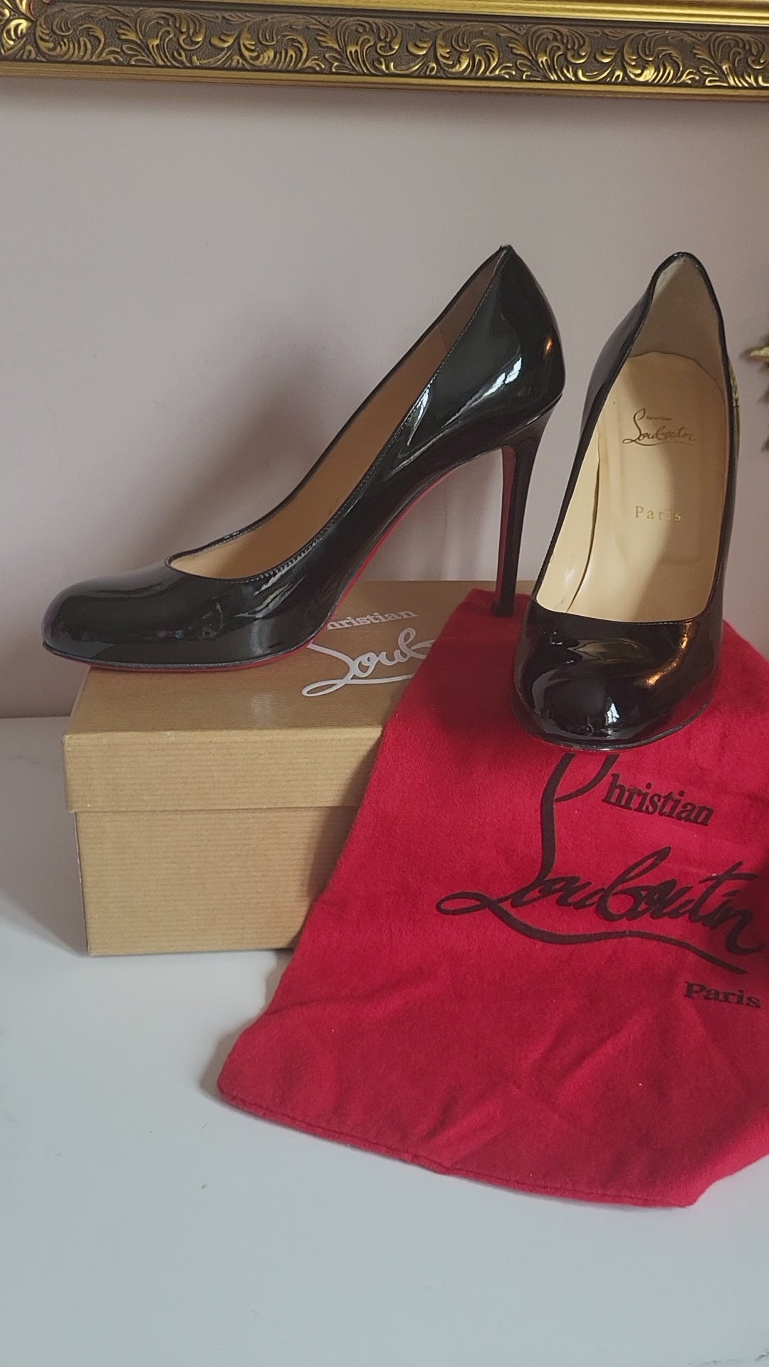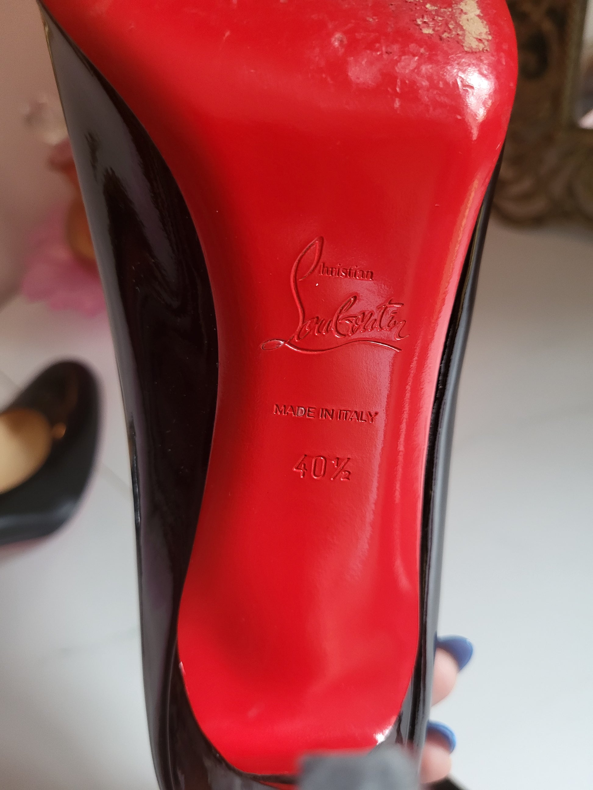 Patent Black and Red Soles are just such a beautiful combination! These are stunning shoes and in excellent condition. Add some real fashion drama and elegance to any outfit, these shoes are just divine.