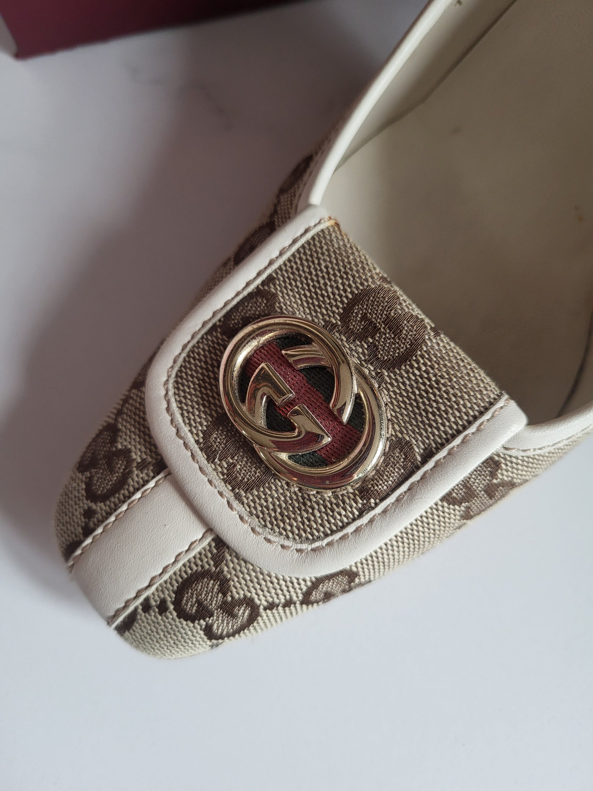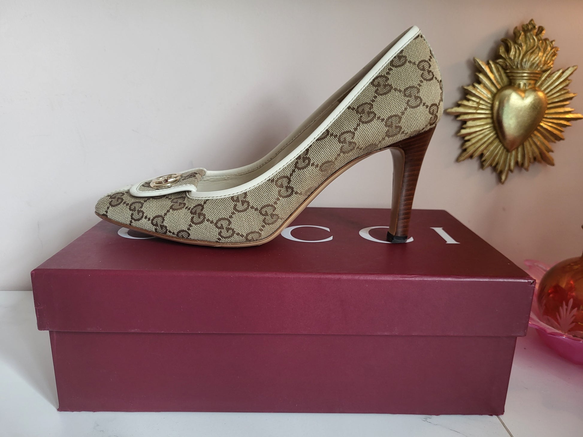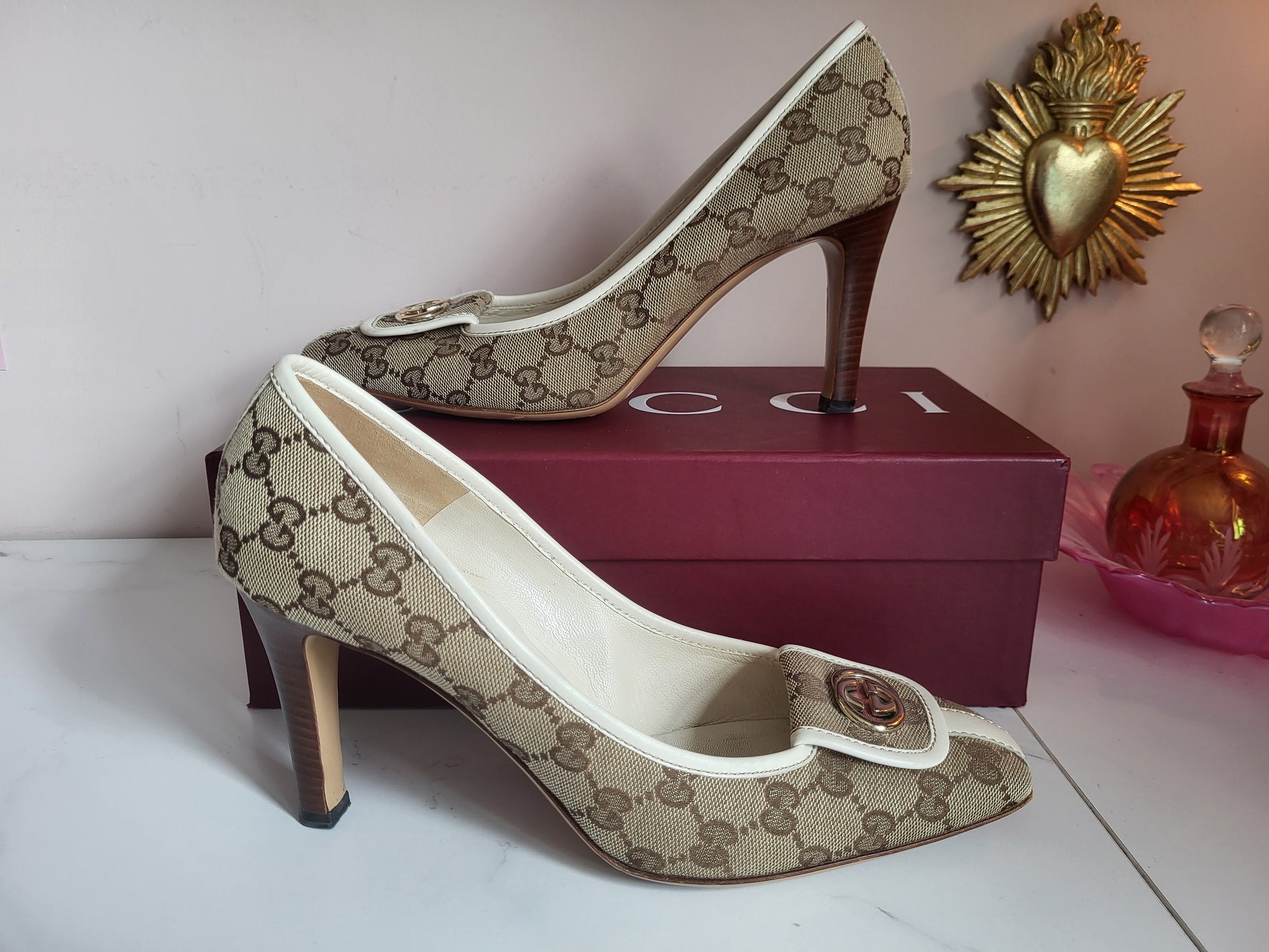 Gucci Classic Print Court Heels with Brass Emblems