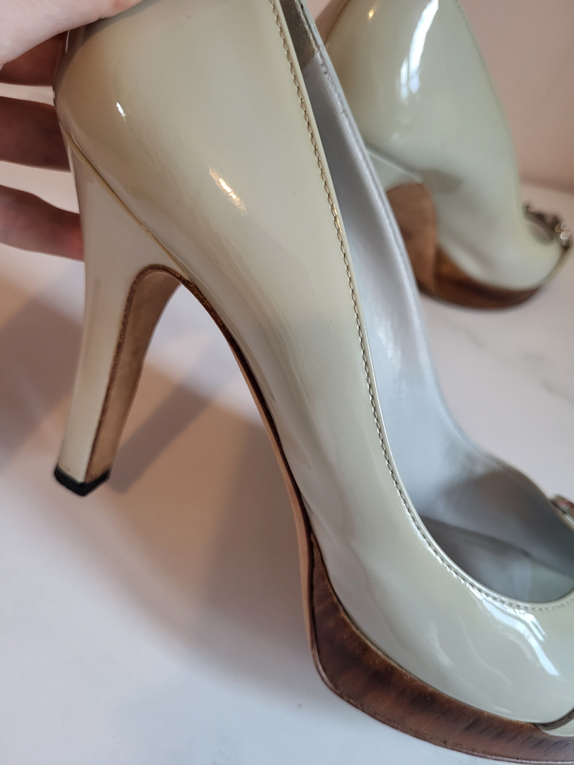 Vintage Gucci Duck Egg Blue Peep Toe Platform Heels