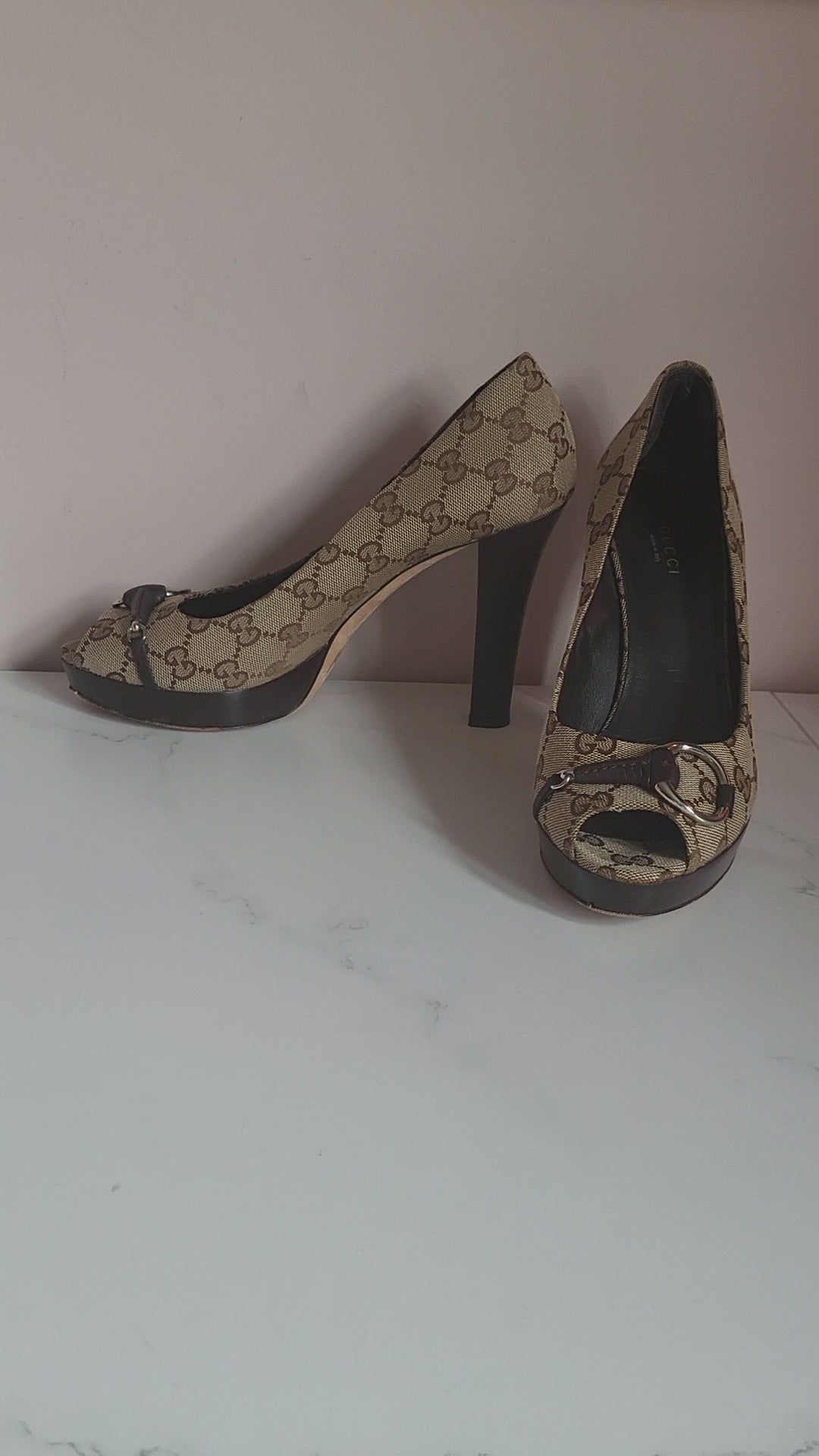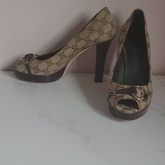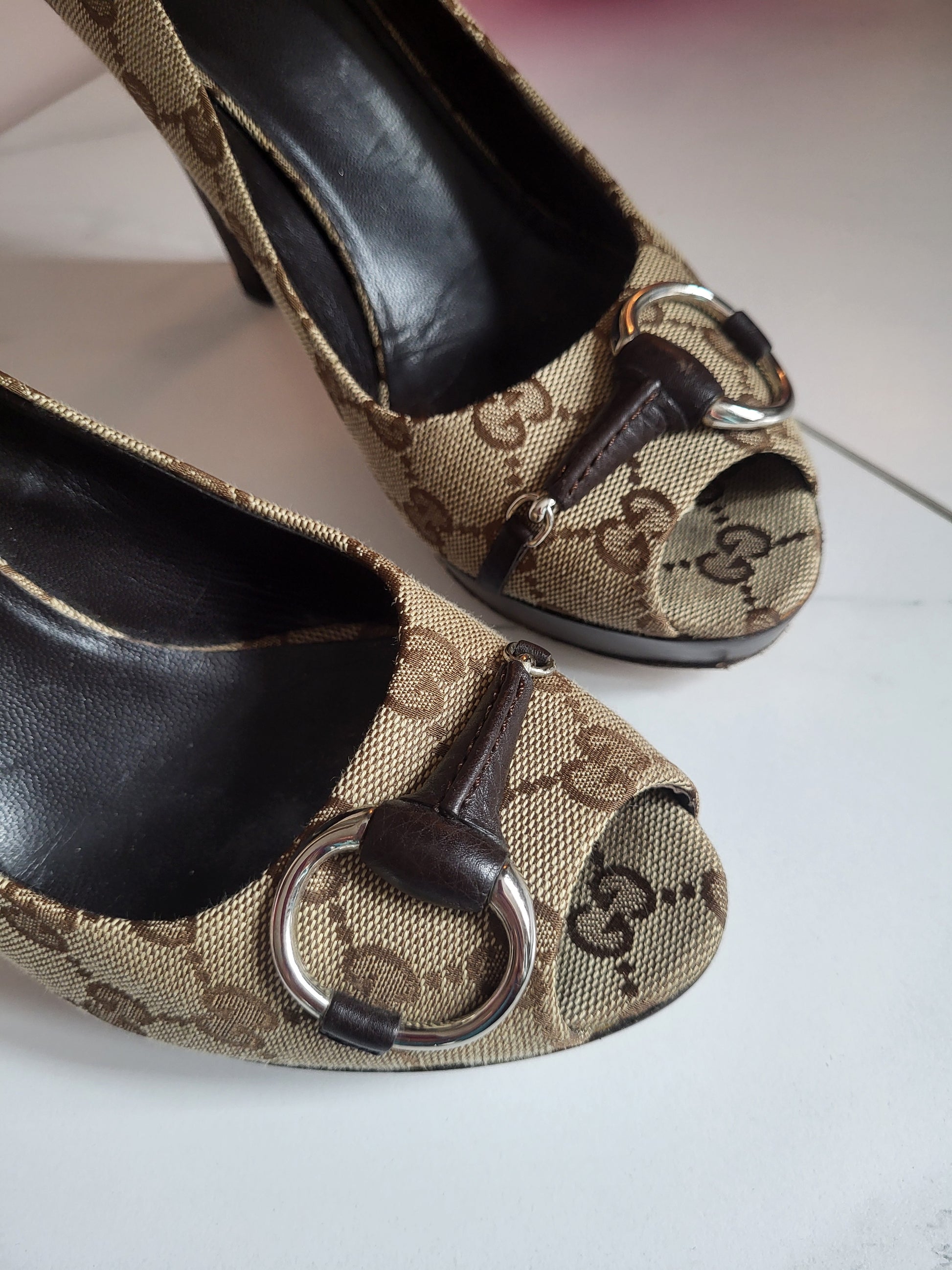 An iconically Gucci pair of Platform Heels. Instantly recognisable with the Gucci Heritage Print and Horsebit detail on the toe.