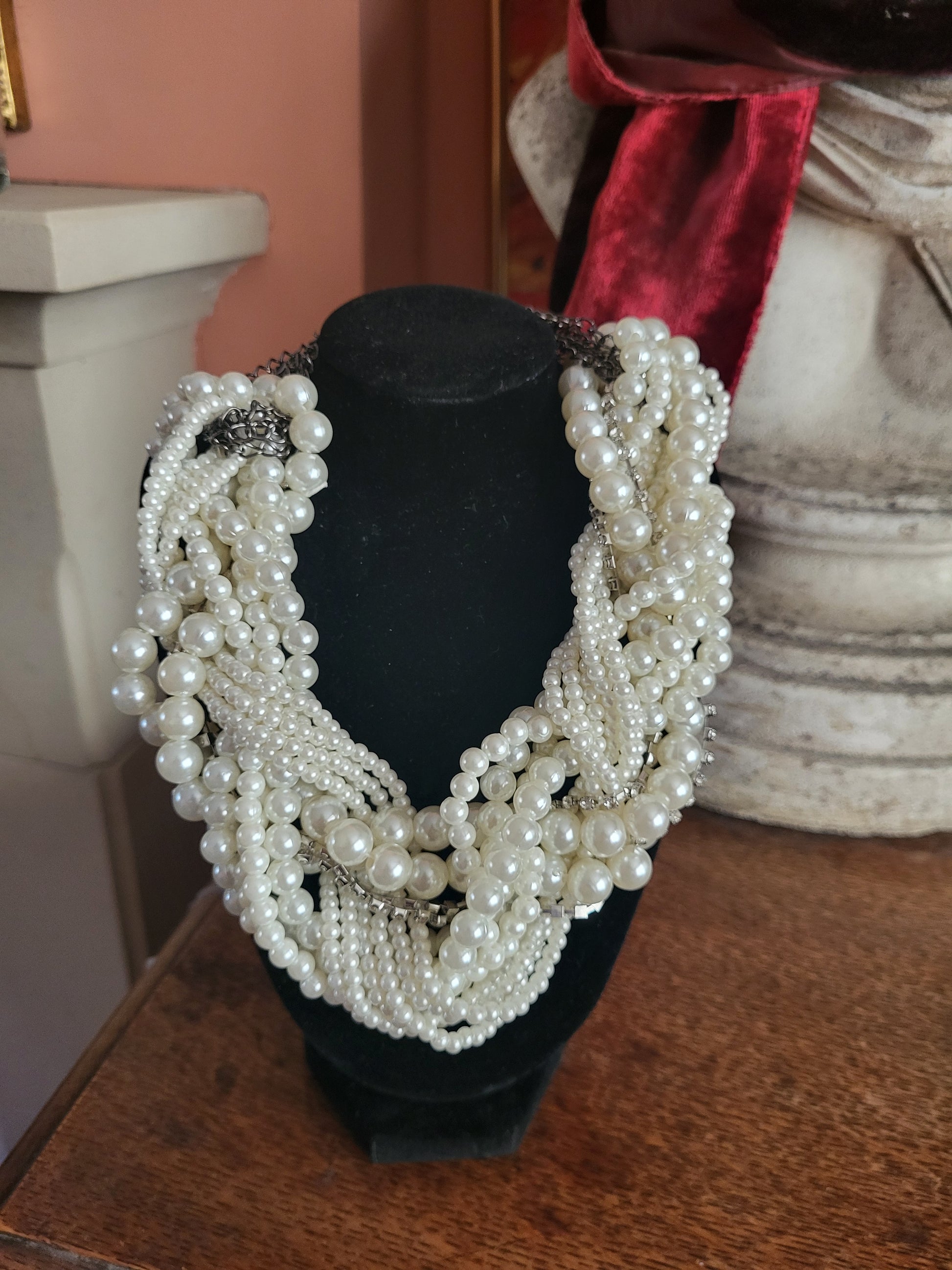 Heavy Multi Strand Faux Pearl and Diamante Necklace.