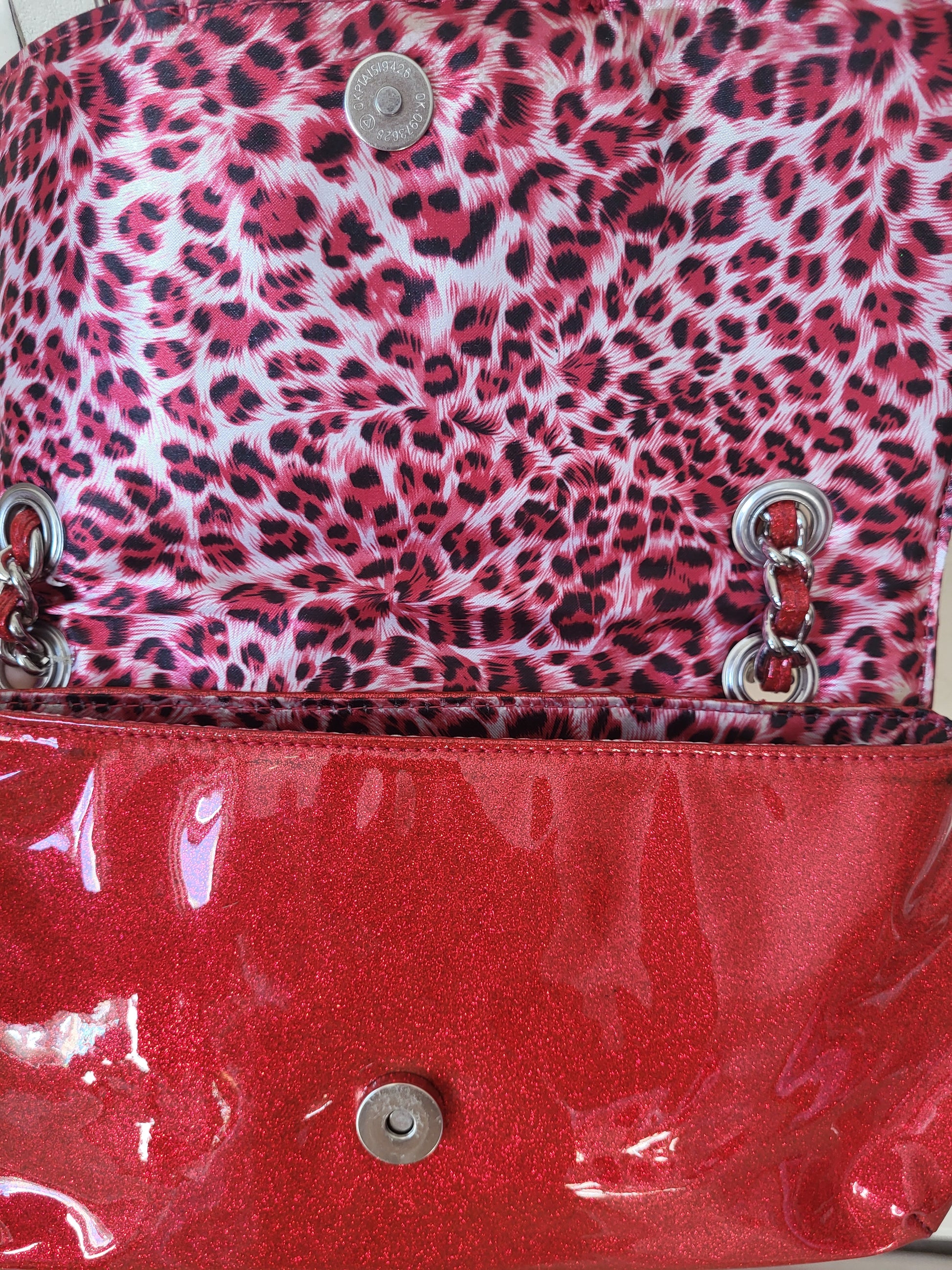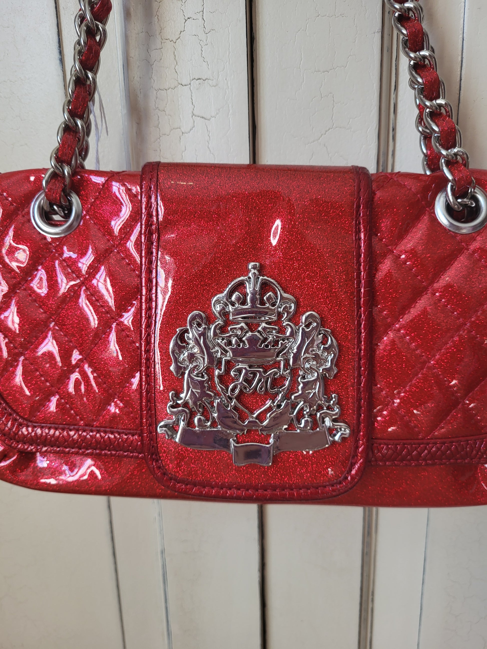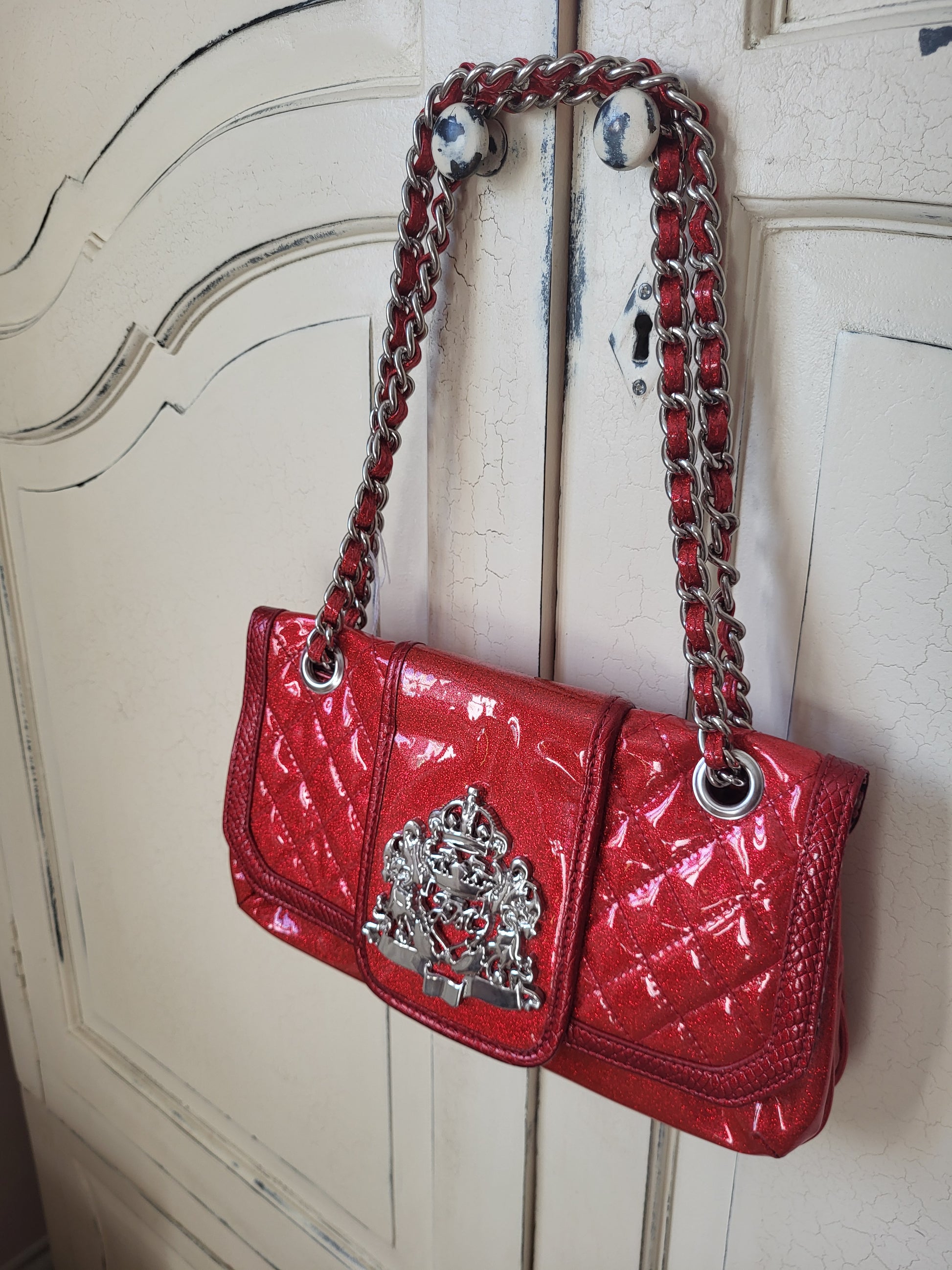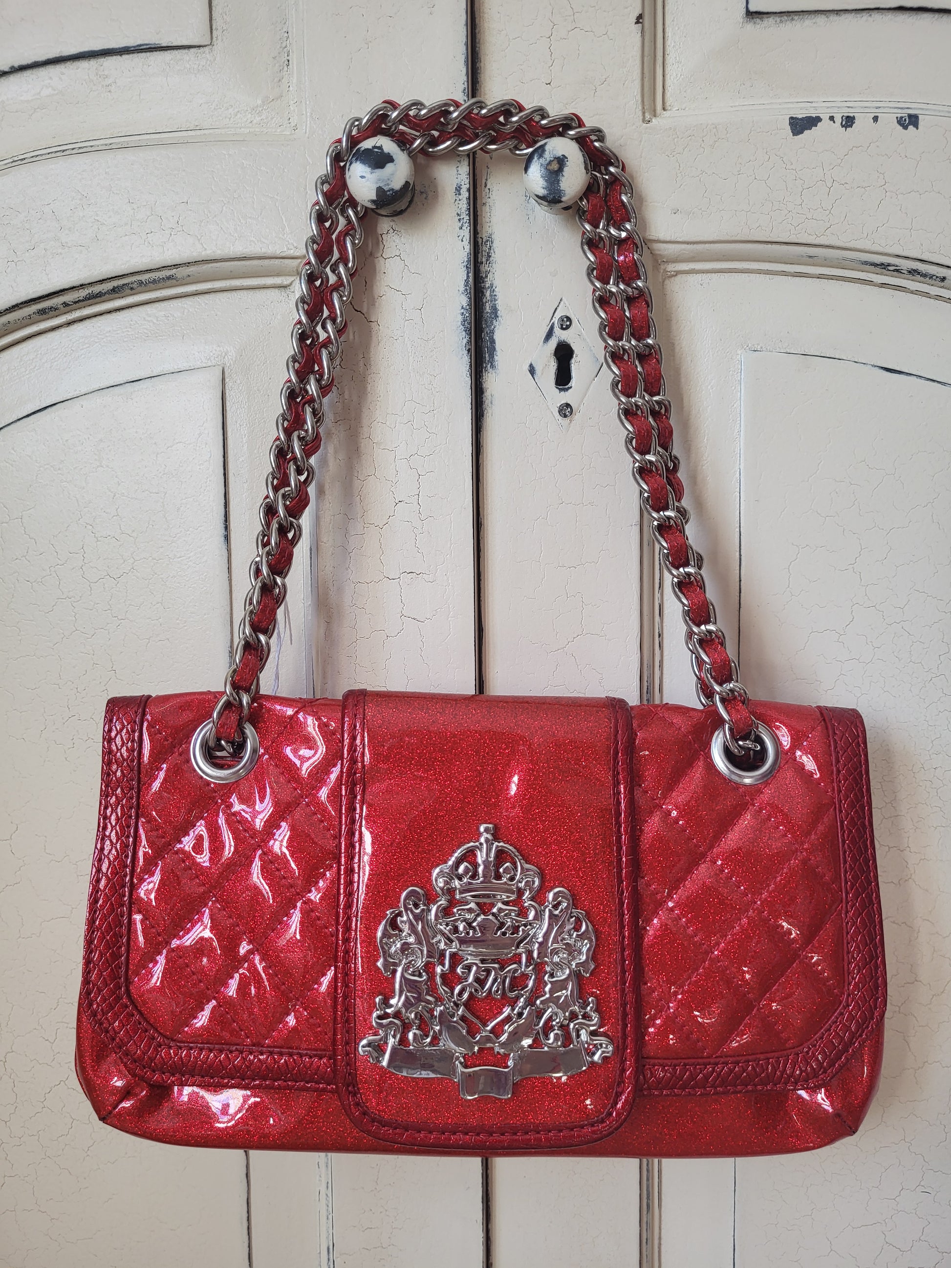 Julian Macdonald Red Patent Glitter Chain Bag with Silver Emblem