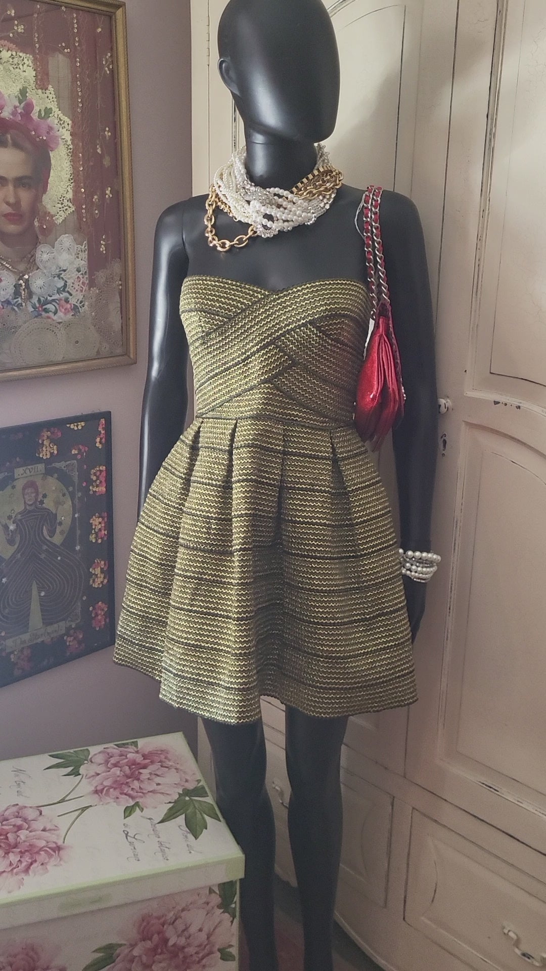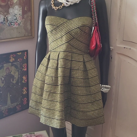 Gorgeous little Gold Bandeau Dress from Sans Souci. Fitted at the bodice and slightly A line from the waist.