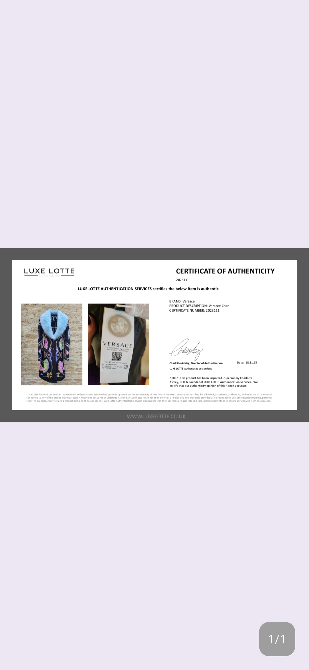 Expertly third-party authenticated. Includes LuxeLotte certificate.