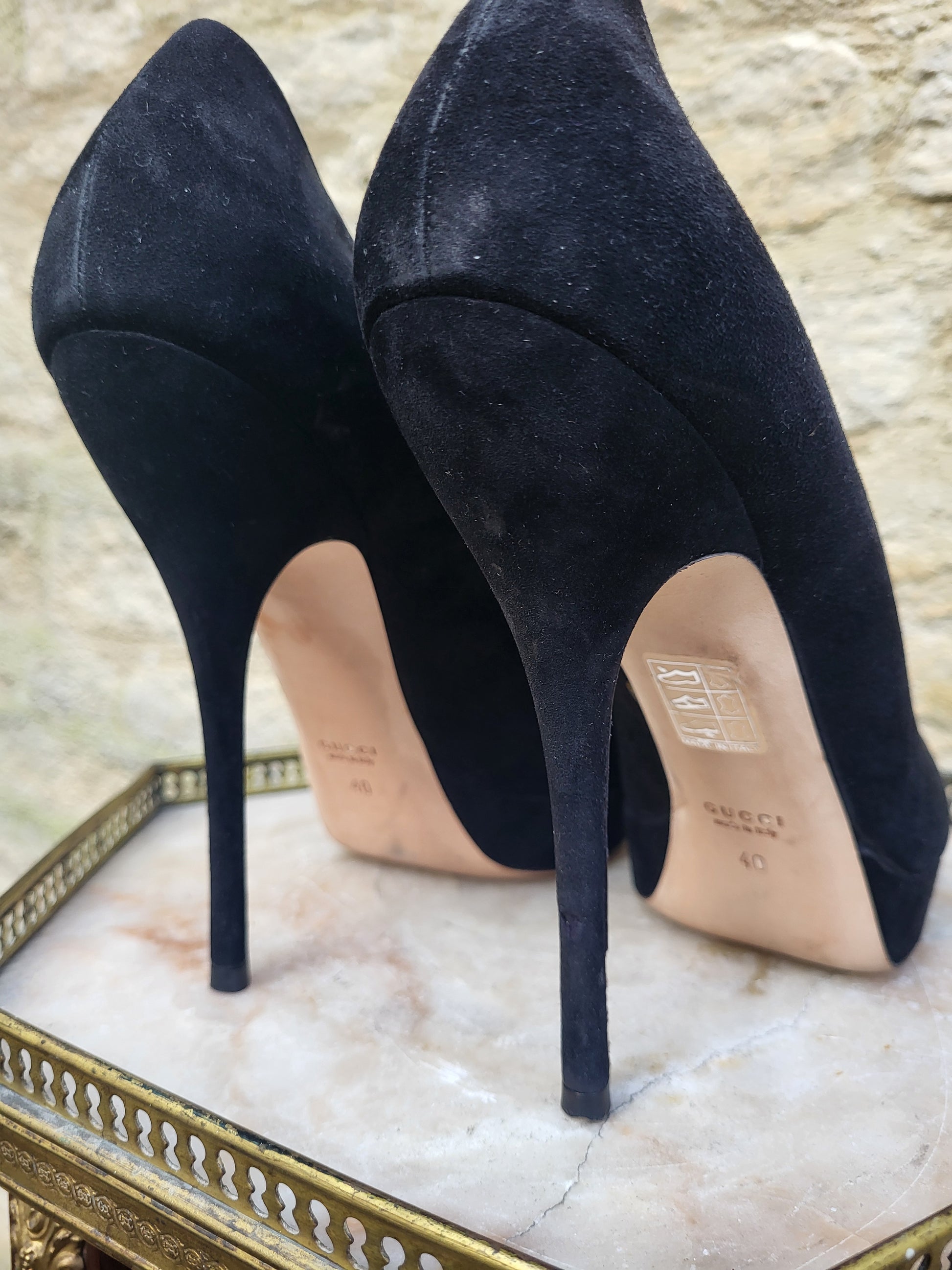 Vintage Gucci Black Suede Platform Heels