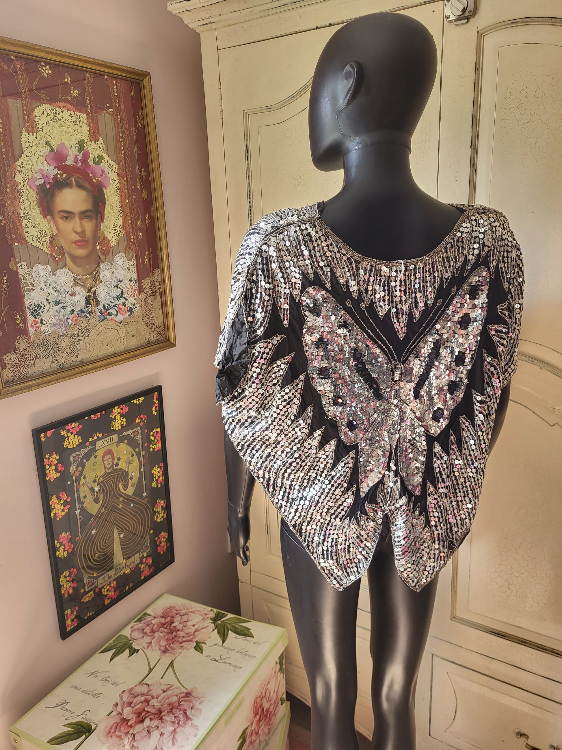 A true vintage piece, this beautifully adorned Butterfly Poncho was handmade in India.
