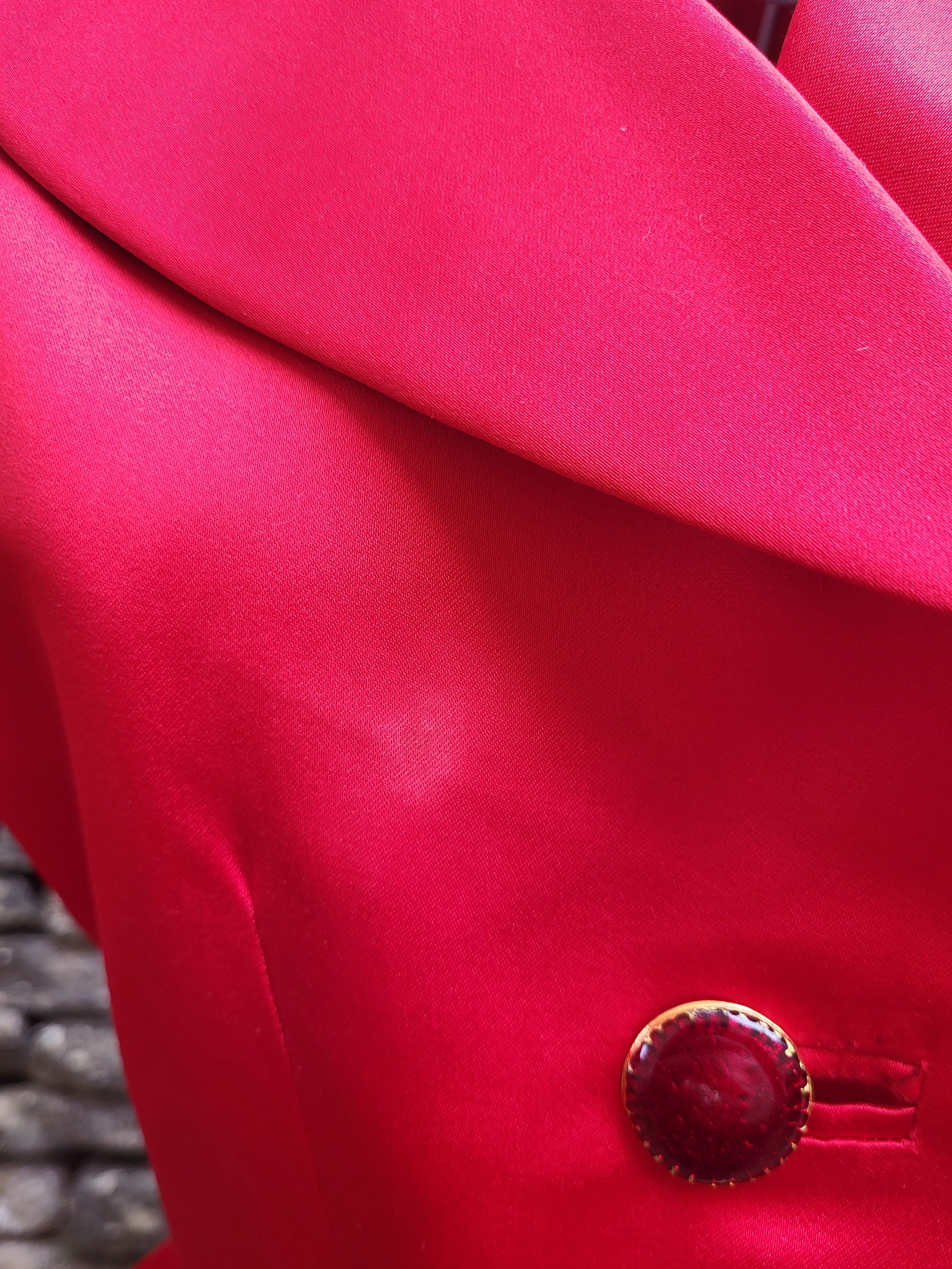 Yves Saint Laurent tailoring from this era remains highly collectible. Rive gauche is French for "Left Bank" and refers to the southern bank of the Seine. Historically, it has been associated with a bohemian, intellectual, and artistic culture, home to neighborhoods like the Latin Quarter and Saint-Germain-des-Prés. This blazer captures the spirit of Bohemian elegance perfectly.
