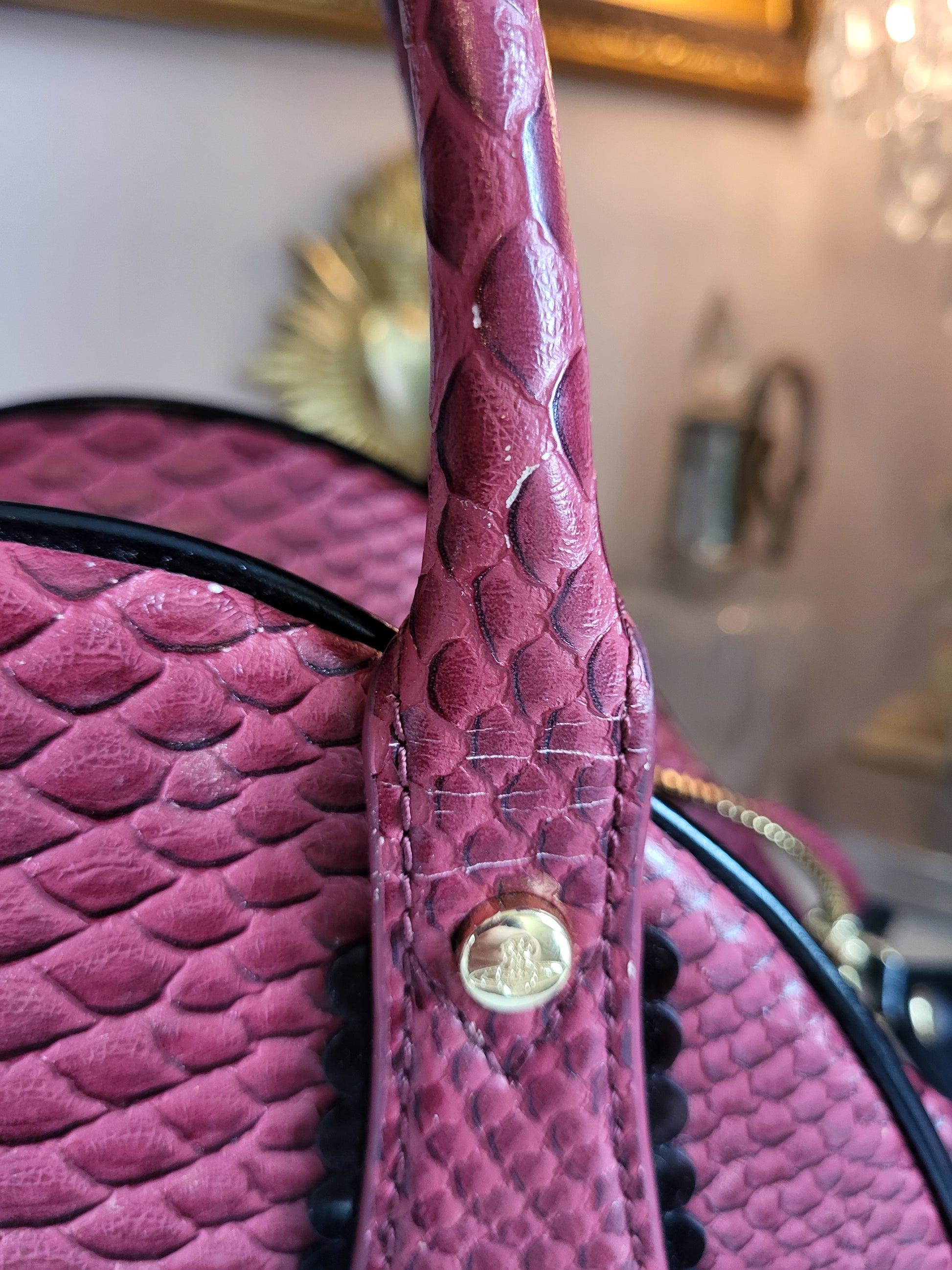 An archival piece from Vivienne Westwood in deep red embossed leather with signature orb detail and black piping. Presented in a rarer shade, this piece carries strong collector appeal and an enduring value.