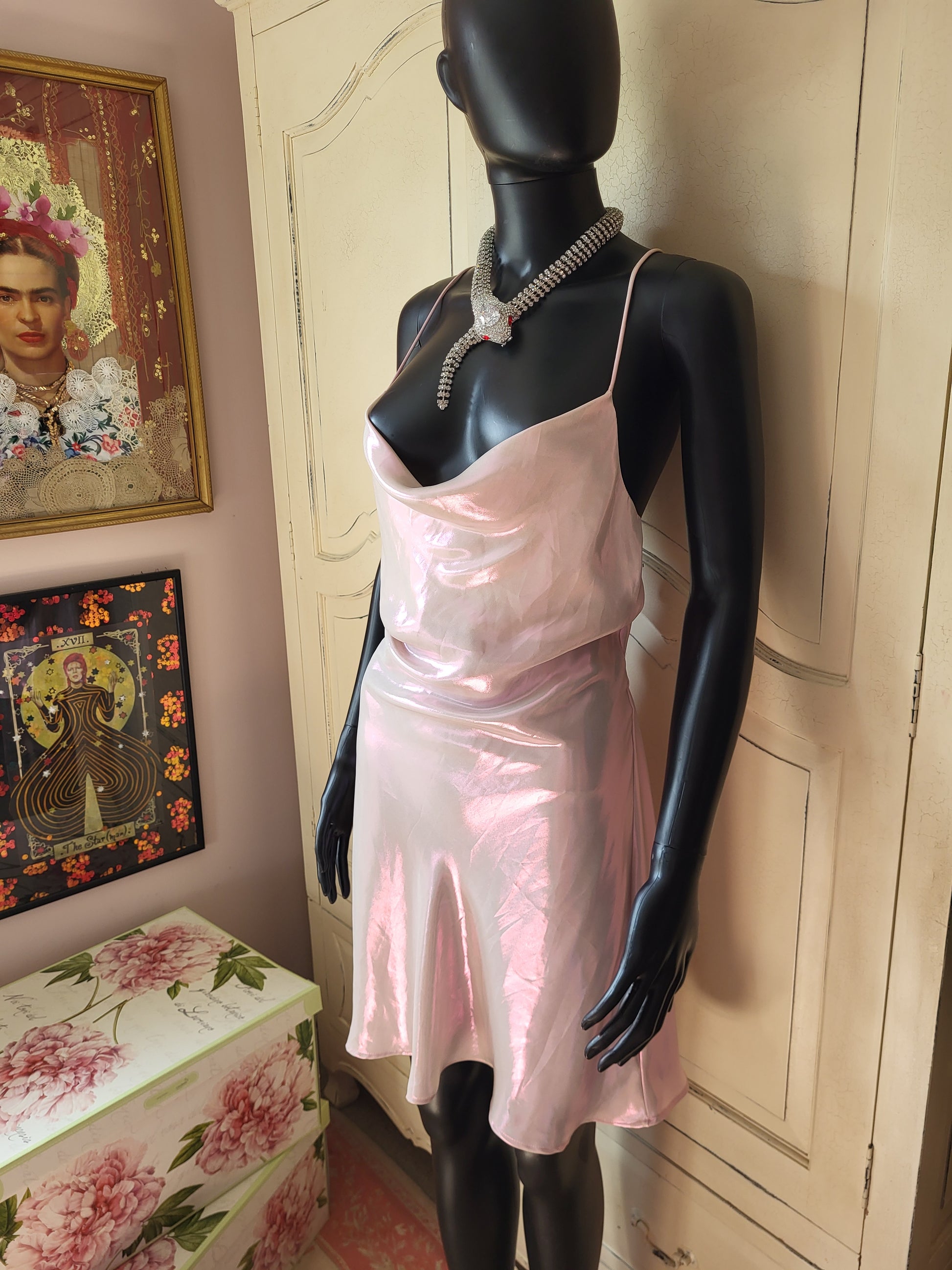 Zara Slinky Cowl Neck Irrediscent Pink Mini Dress